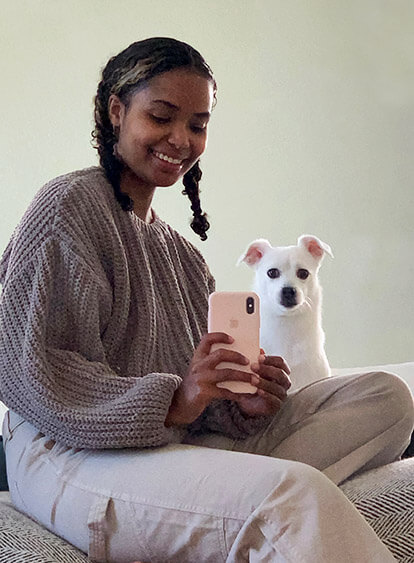 Hi, my name is Elah Hale. I’m from NYC but I currently live in Los Angeles! I am lucky enough to make music for a living, and I'm also a mom to a dog and a cat.
