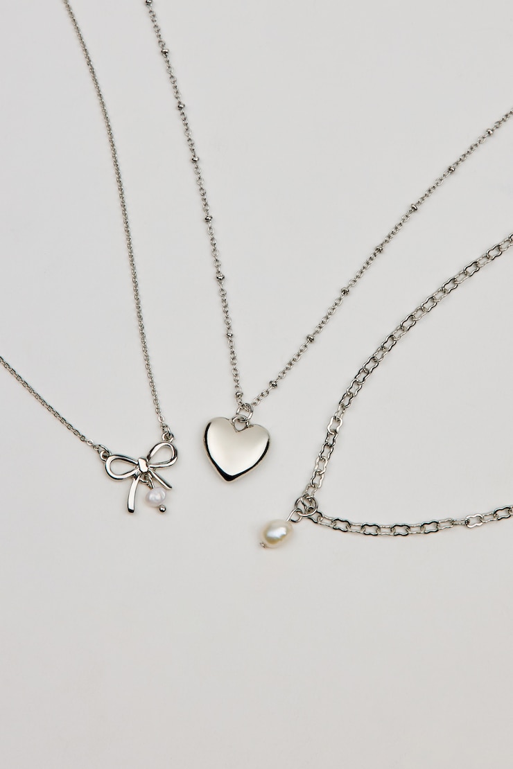 Set of 3 Bow, Pearl, and Heart Necklaces