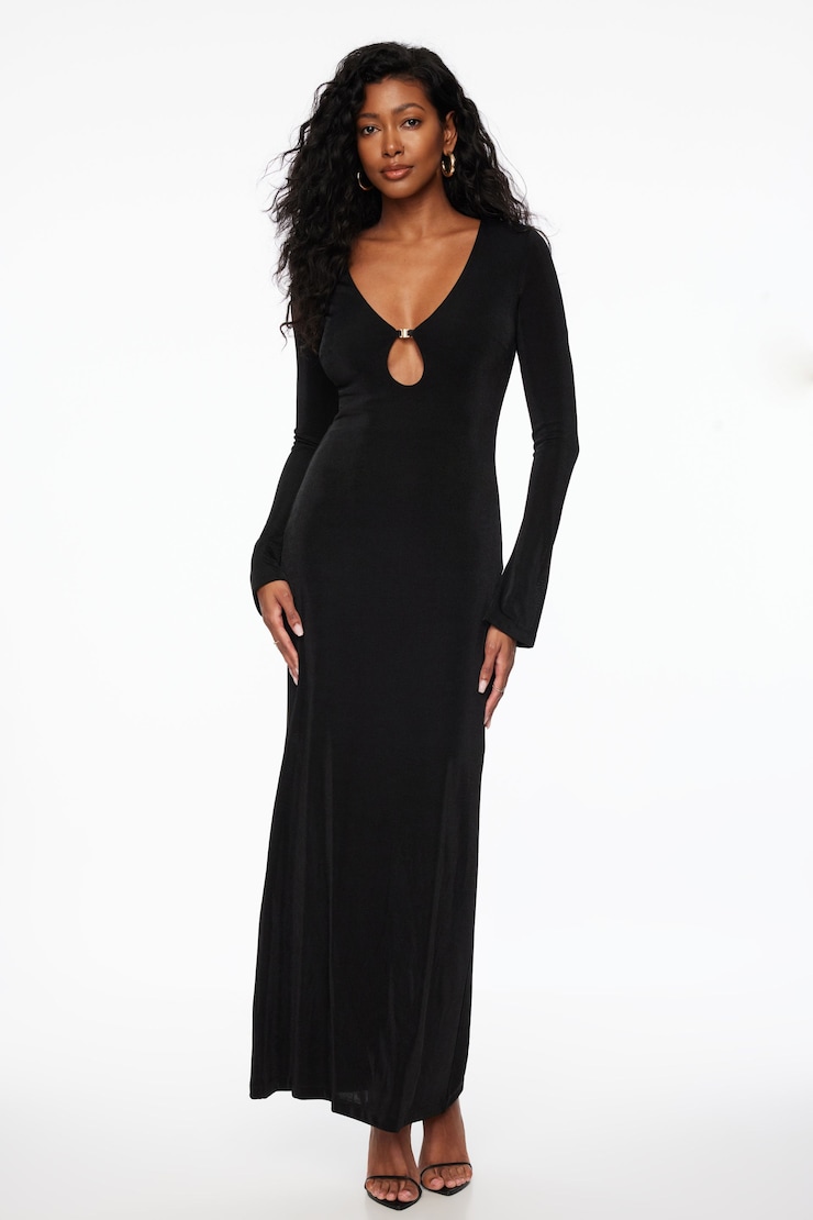 Slinky Deep V-Neck Maxi Dress