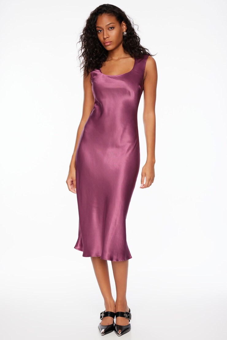 Square Neck Satin Slip Midi Dress
