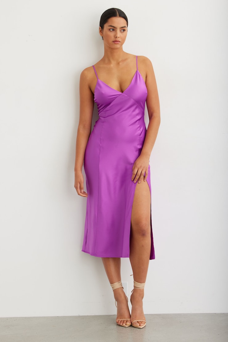 V-Neck Midi Slip Dress