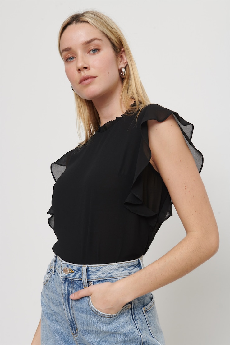 Haut Cassie en chiffon à manches volantées
