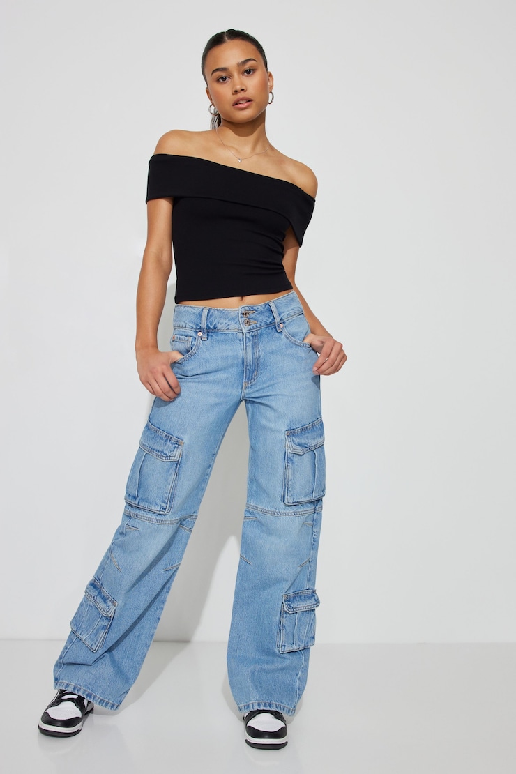 High Rise Wide Cargo Jean