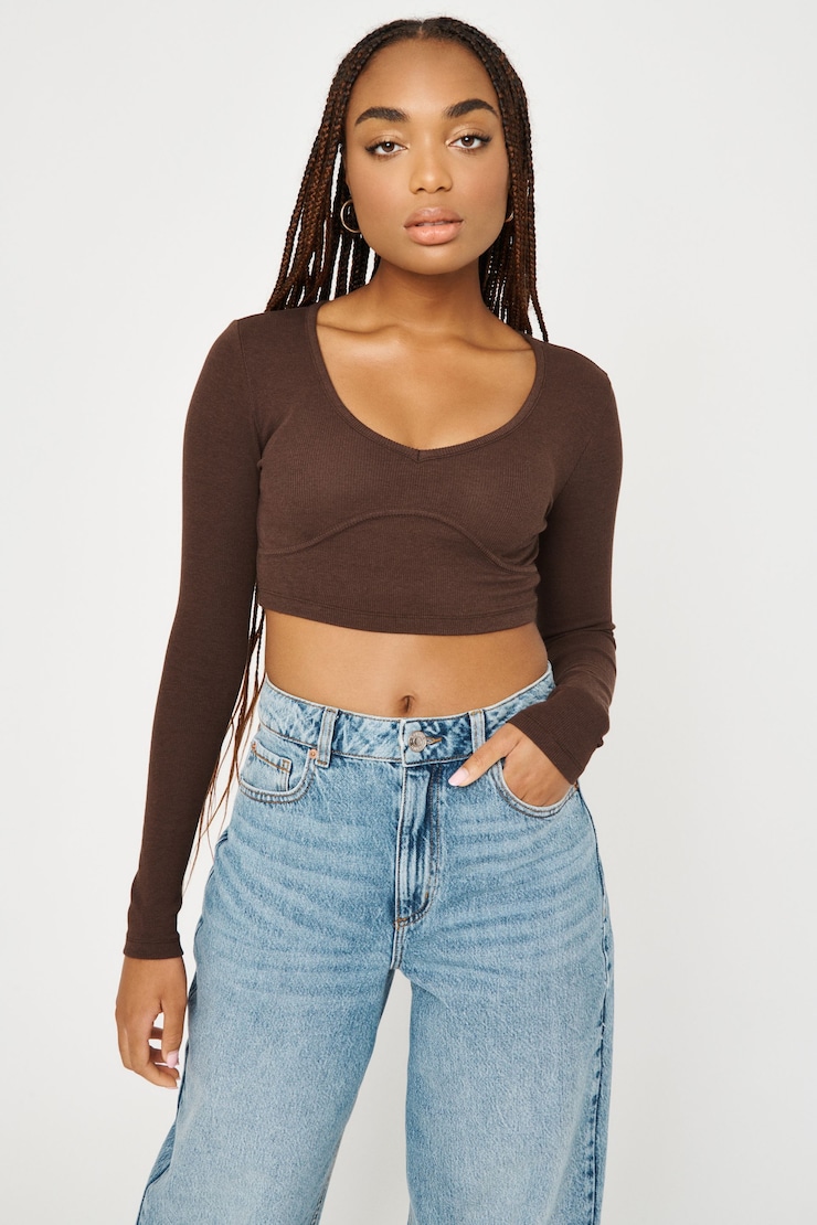 Long Sleeve Tee With Underbust Seaming