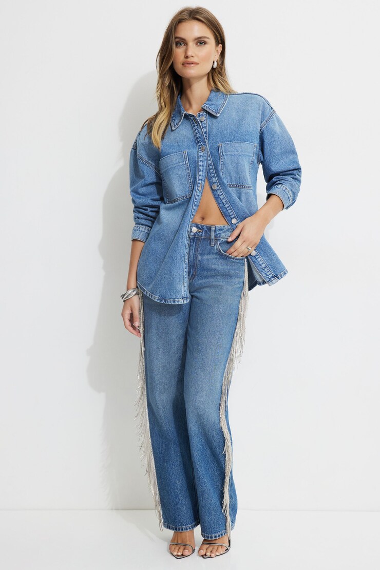 Mika Rhinestone Fringe Relaxed Straight Jeans