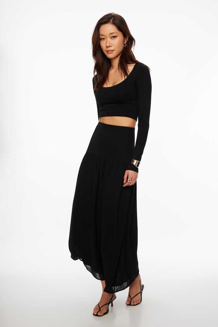 Mixed Media Drop Waist Maxi Skirt