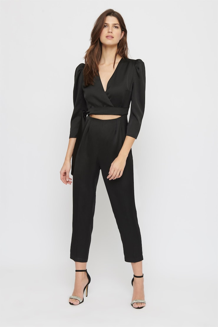 Satin Puff Sleeve Jumpsuit - Final Sale