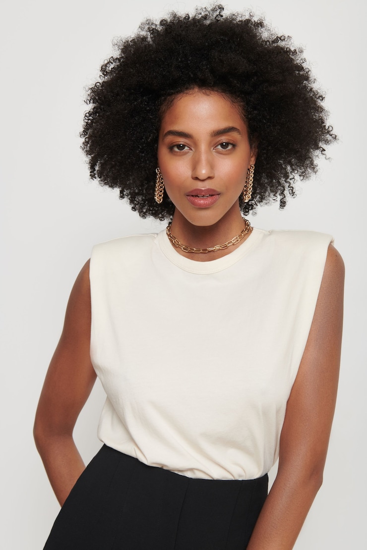Sleeveless Top with Shoulder Pads